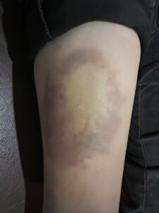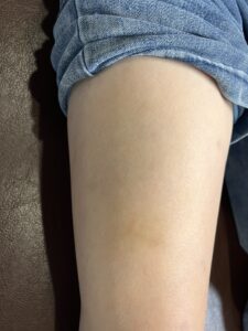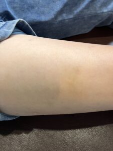 その日は動かすのにも少し楽になった程度でしたが次の日には血腫がなくなり、痛みがほとんどなくなったと報告がありました。
