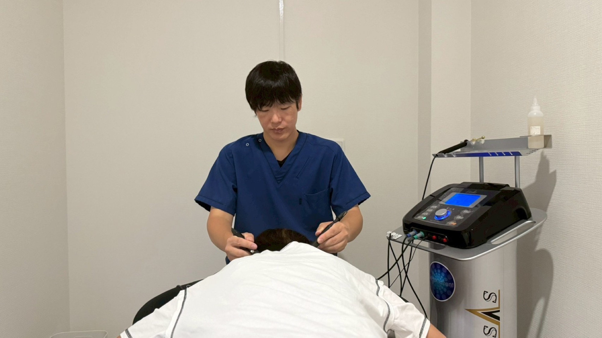 エレサスを2台使⽤して全⾝と部分の施術をし